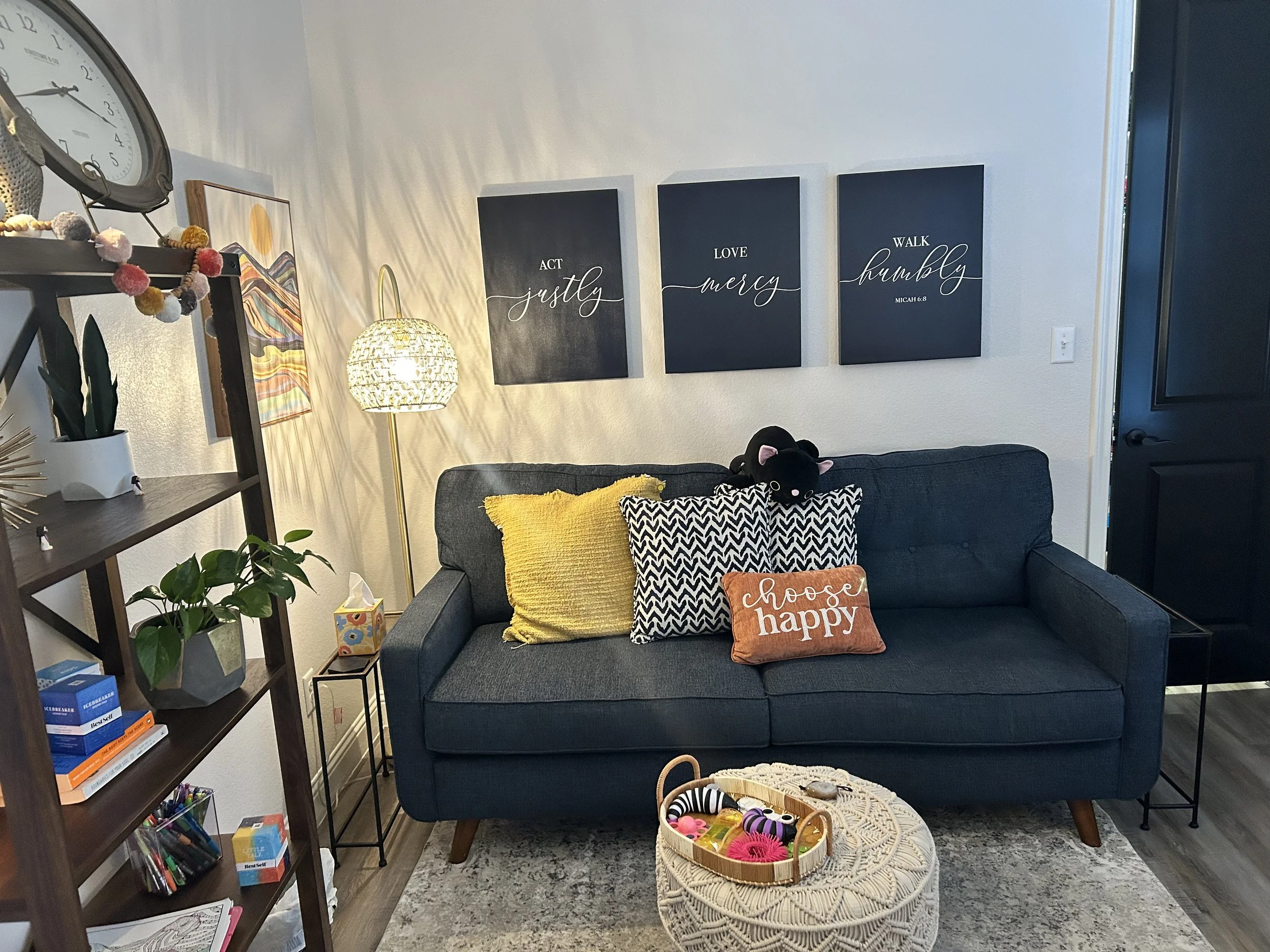I like to think of my office as a little country escape from the chaos of life. I often have windows open, essential oils flowing, and everyone is encouraged to get comfy.